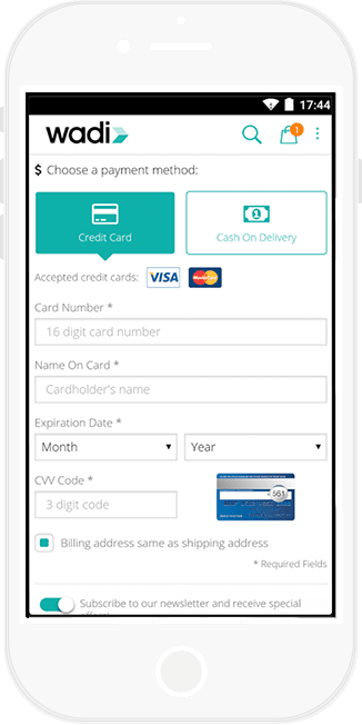 يمكنك دفع ثمن مشترياتك عند الاستلام أو الدفع ببطاقة الائتمان الخاصة بك بالإضافة الي التمتع بكوبون الخصم الفوري وعند تحميلك التطبيق الان ثم التسجيل تحصل على قسيمة شراء بقيمة 150 ريال فورا